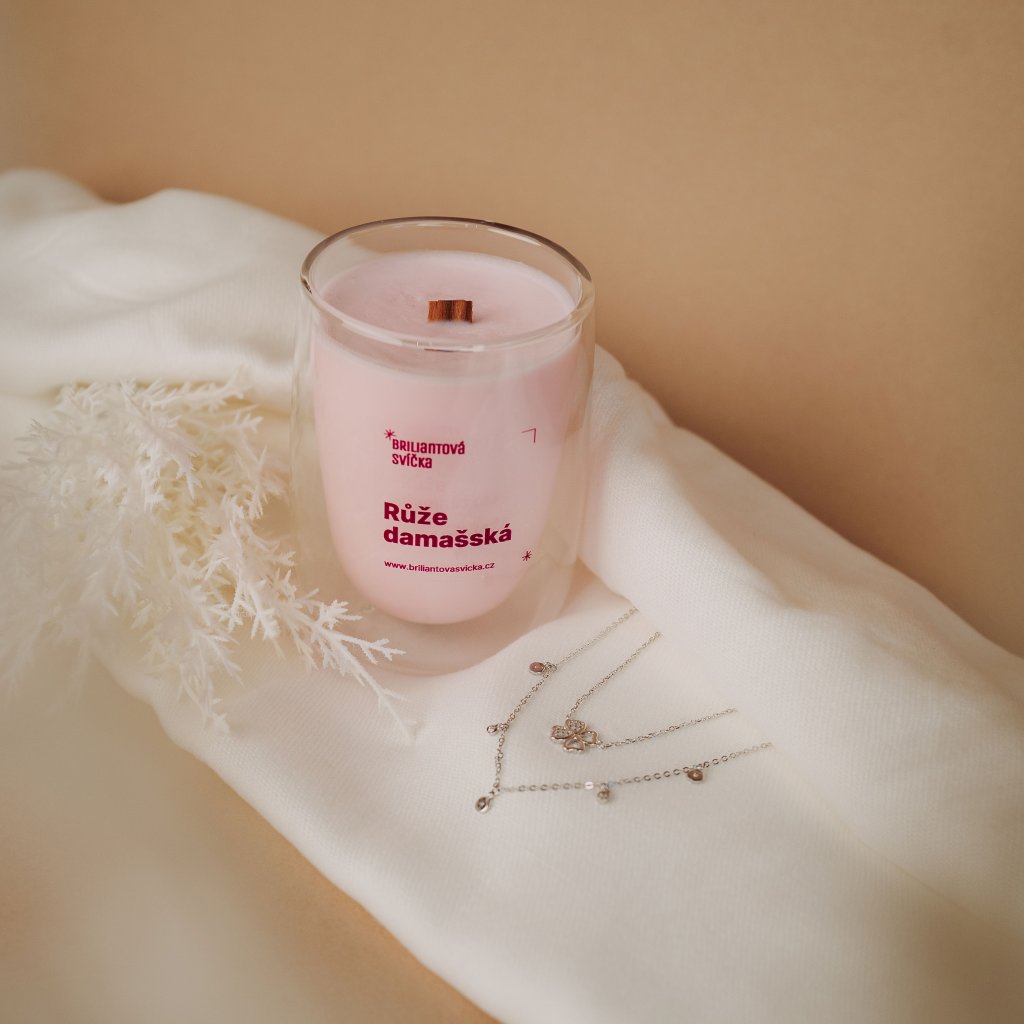 Svíčka Damašská růže & Stříbrný náhrdelník (M)