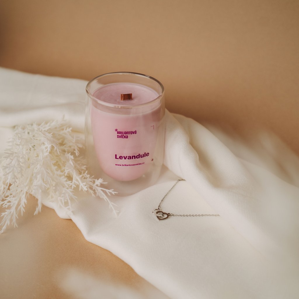 Svíčka Levandule & Ocelový náhrdelník Dvě srdce (M)