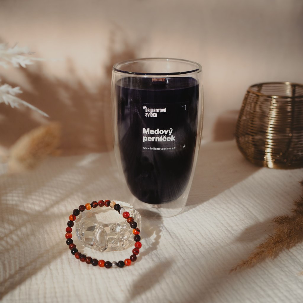 Svíčka Medový perníček & Náramek "Achát" 17 cm (L)