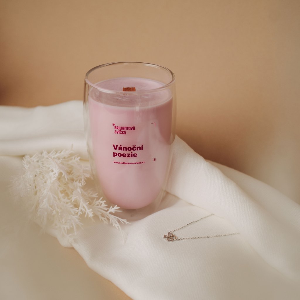 Svíčka Vánoční poezie & Stříbrný náhrdelník Čtyřlístek (L)