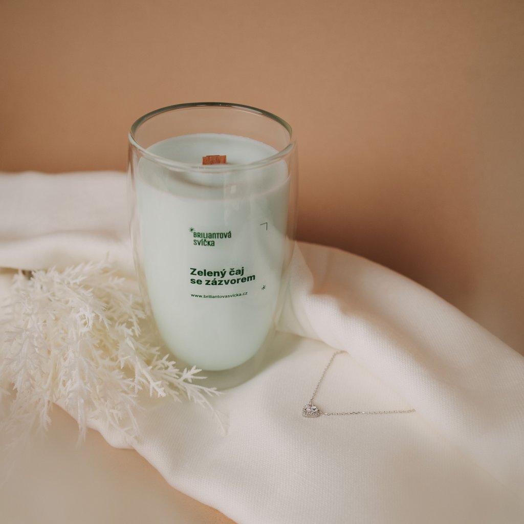 Svíčka s vůní Zeleného čaje se zázvorem přináší jemnou a osvěžující vůni zeleného čaje, obohacenou o pikantní nádech zázvoru. Její aroma je dokonalou kombinací svěžesti a stimulujícího tepla, poskytující relaxační zážitek a příjemnou atmosféru v jakémkoliv prostředí.